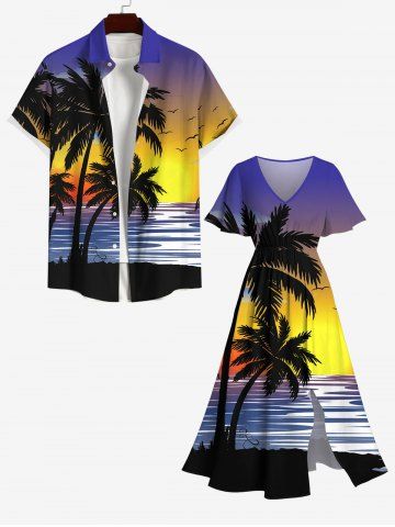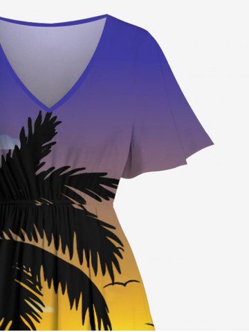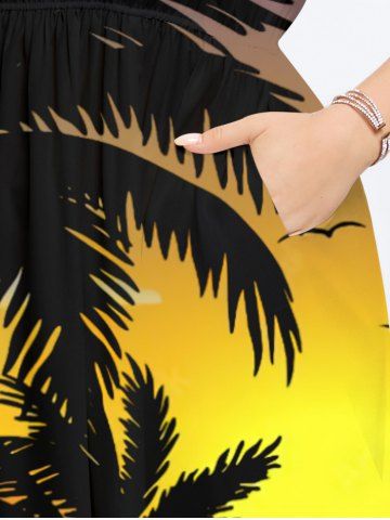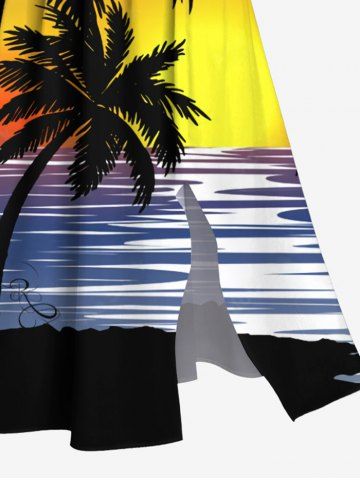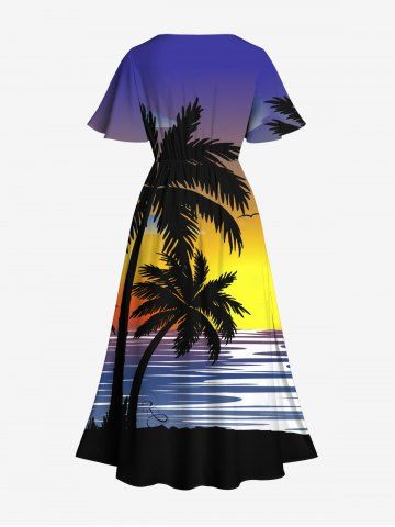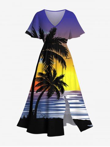 Plus Size Coconut Tree Bird Sunset Ombre Colorblock Sky Print Split Hawaii Midi Dress - Multi-a - M