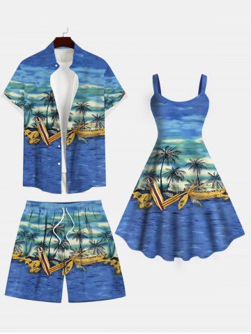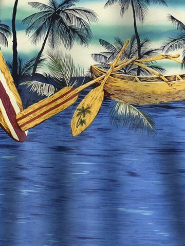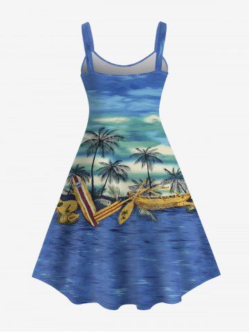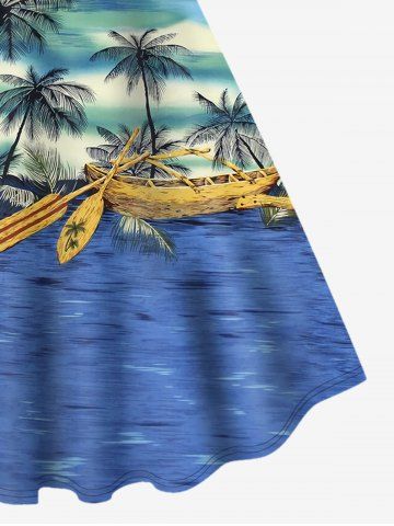 Plus Size Coconut Tree Boat Sea Guitar Print Hawaii Tank Dress - Blue - M