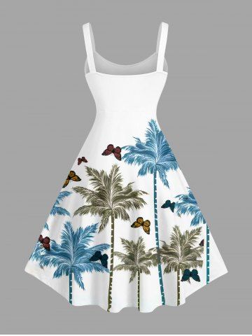 Plus Size Coconut Tree Butterfly Print Hawaii A Line Dress - White - Xs