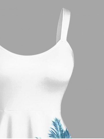 Plus Size Coconut Tree Butterfly Print Hawaii A Line Dress - White - S