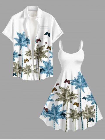 Plus Size Coconut Tree Butterfly Print Hawaii A Line Dress - White - 6x