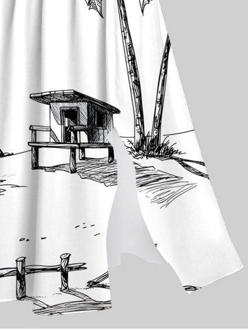 Plus Size Coconut Tree Cabin Print Split Hawaii Midi Dress - White - 4x