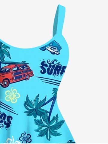 Plus Size Coconut Tree Car Floral Letters Print Hawaii A Line Tank Dress - Light Blue - 2x