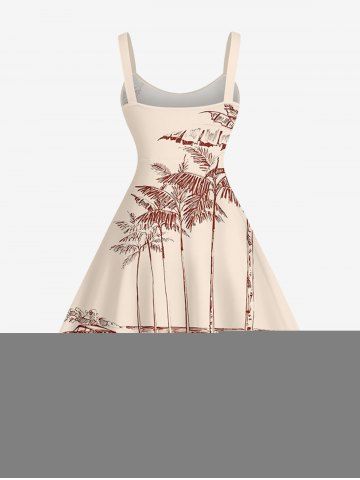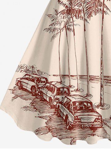 Plus Size Coconut Tree Cars Print Hawaii Tank Dress - Beige - Xxs