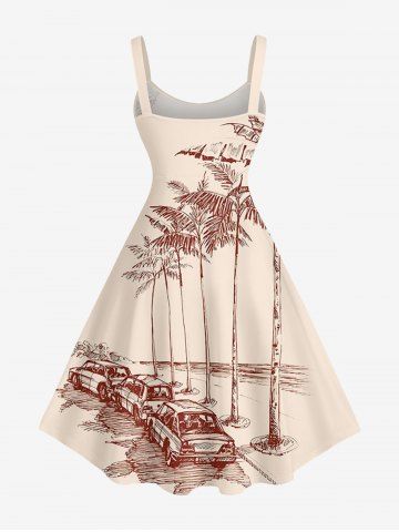 Plus Size Coconut Tree Cars Print Hawaii Tank Dress - Beige - M