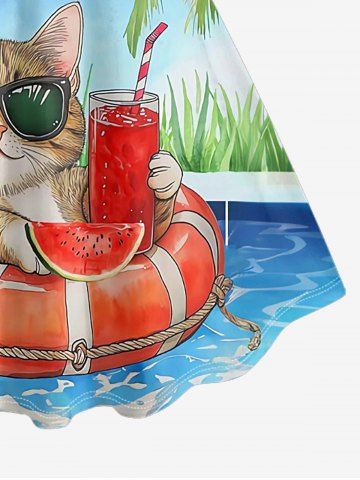 Graphic Dresses > Plus Size Coconut Tree Cat Swimming Ring Letters Print Hawaii A Line Dress