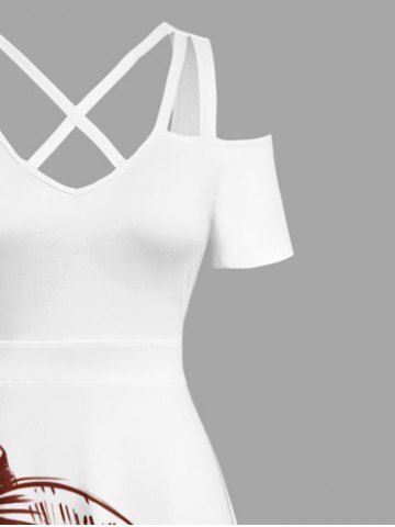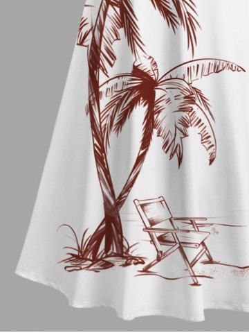 Plus Size Coconut Tree Chair Print Cold Shoulder Crisscross Hawaii Maxi Dress - White - 4x
