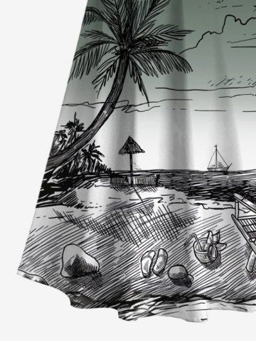 Plus Size Coconut Tree Chairs Boat Cloud Seascape Print Cold Shoulder Crisscross Hawaii Maxi Dress - Black - S
