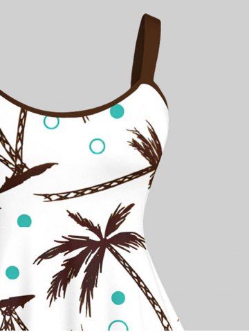 Plus Size Coconut Tree Circle Print Hawaii A Line Tank Dress - White - Xs