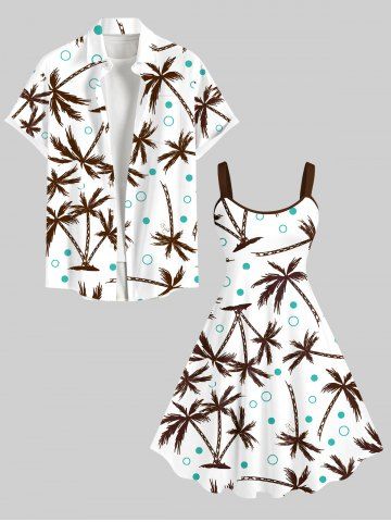 Plus Size Coconut Tree Circle Print Hawaii A Line Tank Dress - White - 6x