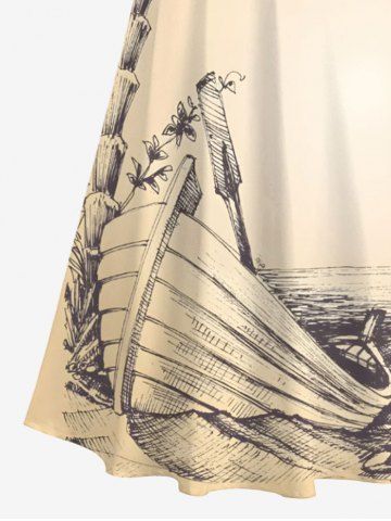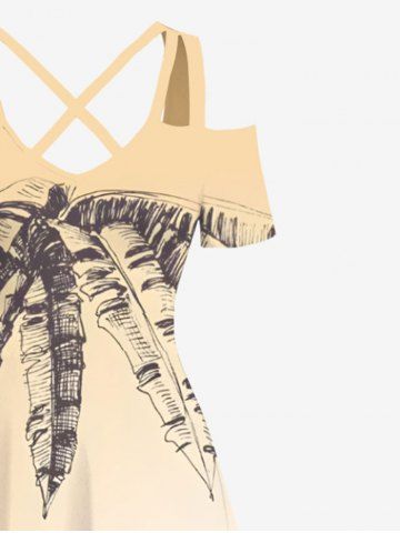 Plus Size Coconut Tree Cloud Boat Seascape Print Cold Shoulder Crisscross Hawaii Maxi Dress - Light Coffee - 1x