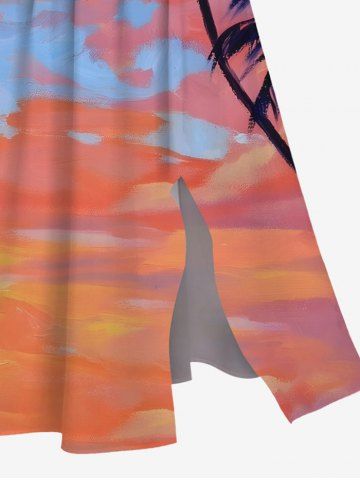 Plus Size Coconut Tree Cloud Dusk Print Hawaii Split Pocket A Line Midi Dress - Orange - L
