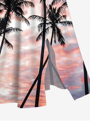 Plus Size Coconut Tree Cloud Ombre Dusk Print Hawaii Split Pocket A Line Midi Dress - Light Pink - 5x