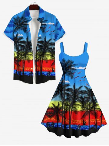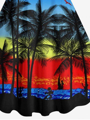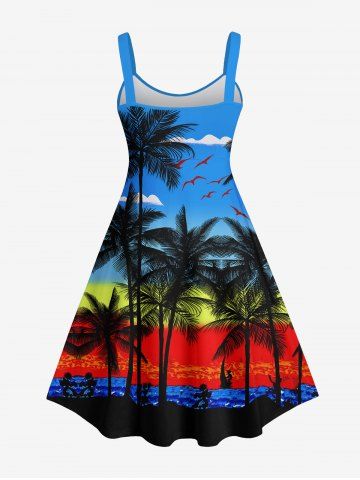 Hawaii Plus Size Coconut Tree Cloud Sea Colorblock Print Tank Dress - Multi-a - S