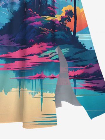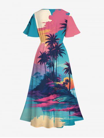 Graphic Dresses > Plus Size Coconut Tree Cloud Sea Mountain Moon Print Split Hawaii Midi Dress