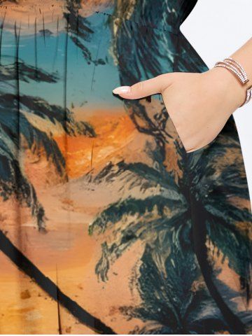 Plus Size Coconut Tree Cloud Seascape Oil Painting Print Split Hawaii Midi Dress - Green - S