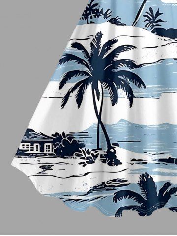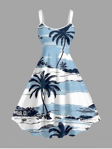 Plus Size Coconut Tree Cloud Seascape Print Hawaii Tank Dress - Light Blue - 1x