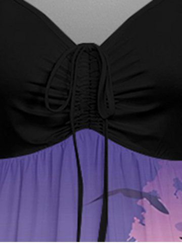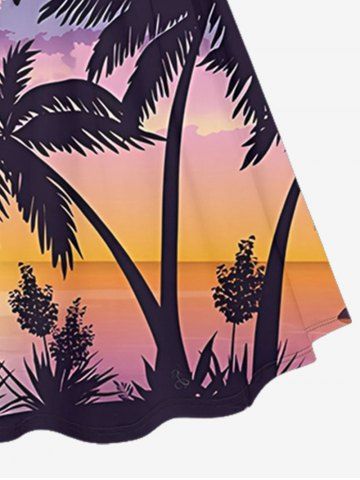 Plus Size Coconut Tree Cloud Sun Ombre Print Cinched Hawaii Dress - Purple - 2x