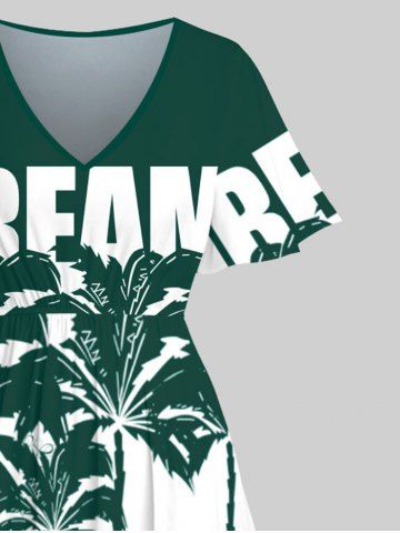 Graphic Dresses > Plus Size Coconut Tree Colorblock Dreams Letters Print Split Hawaii Midi Dress
