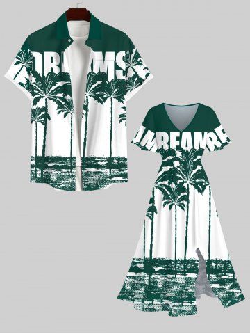 Graphic Dresses > Plus Size Coconut Tree Colorblock Dreams Letters Print Split Hawaii Midi Dress