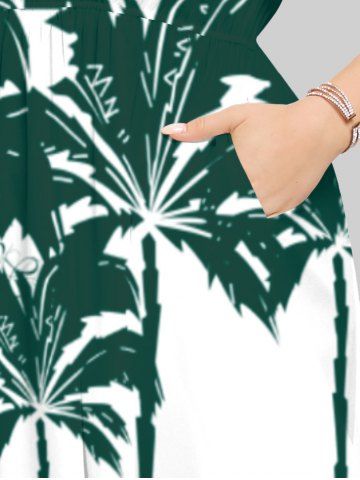 Plus Size Coconut Tree Colorblock Dreams Letters Print Split Hawaii Midi Dress - Multi-a - 5x