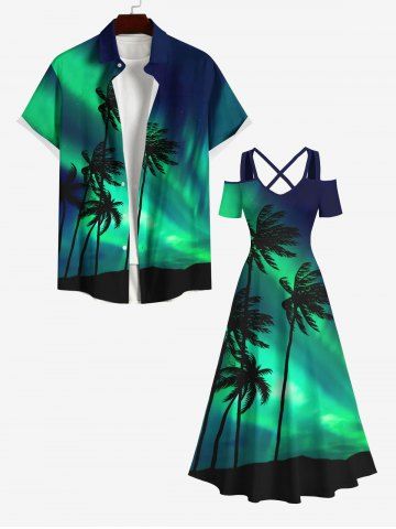 Coconut Tree Colorblock Glitter Light Beam 3D Print Plus Size Matching Hawaii Beach Outfit For Couples