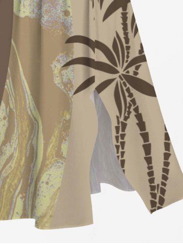 Plus Size Coconut Tree Colorblock Ocean Current Print Split Hawaii Midi Dress - Coffee - S