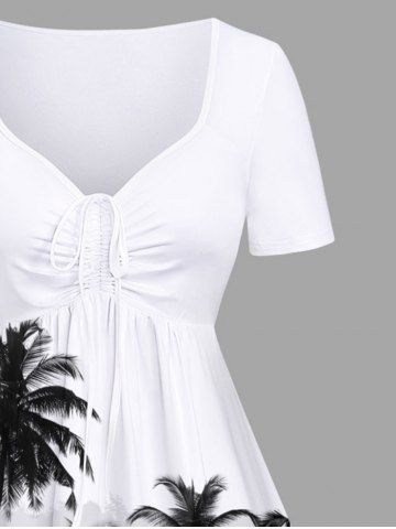 Plus Size Coconut Tree Colorblock Print Cinched Hawaii Dress - White - 6x