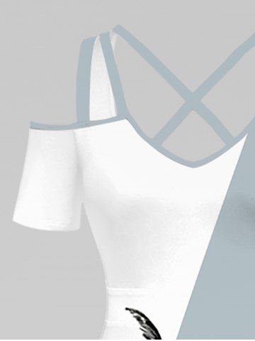 Plus Size Coconut Tree Colorblock Print Crisscross Cold Shoulder Hawaii Maxi Dress - Multi-a - M