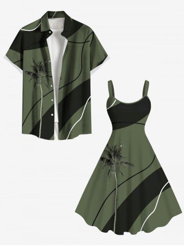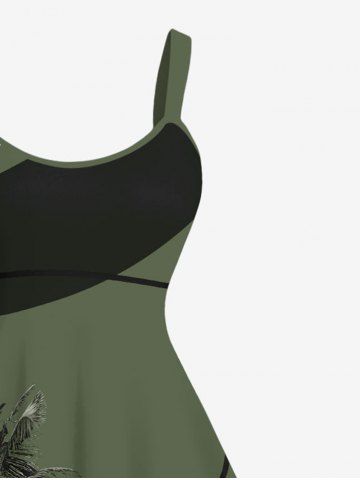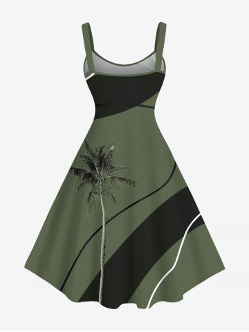 Plus Size Coconut Tree Colorblock Print Hawaii Tank Dress - Deep Green - 1x