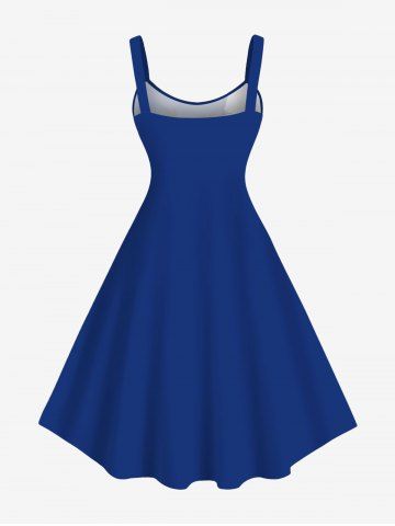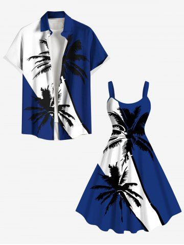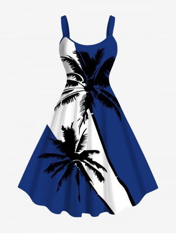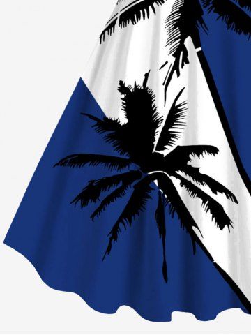 Plus Size Coconut Tree Colorblock Print Hawaii Tank Dress - Deep Blue - 2x