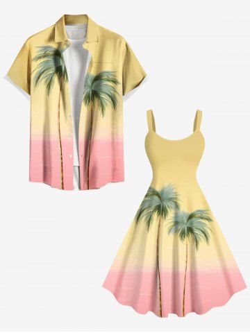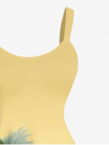 Graphic Dresses > Plus Size Coconut Tree Colorblock Print Hawaii Tank Dress