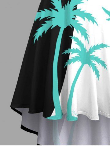 Plus Size Coconut Tree Colorblock Print High Low Hawaii Cami Dress - Black - S