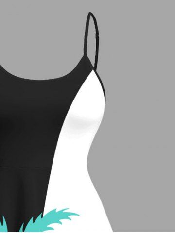 Plus Size Coconut Tree Colorblock Print High Low Hawaii Cami Dress - Black - L