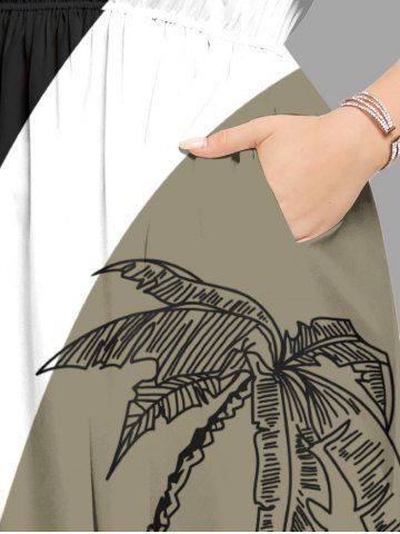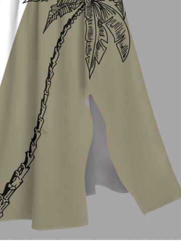 Graphic Dresses > Plus Size Coconut Tree Colorblock Print Split Hawaii Midi Dress