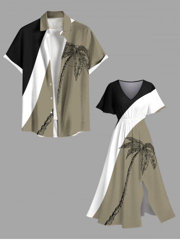 Graphic Dresses > Plus Size Coconut Tree Colorblock Print Split Hawaii Midi Dress