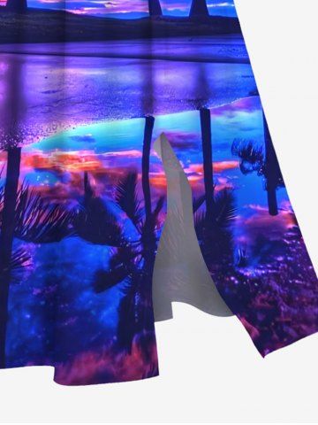 Plus Size Coconut Tree Colorful Cloud Seascape Print Split Hawaii Midi Dress - Blue - Xxs