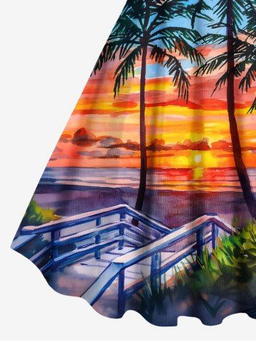 Graphic Dresses > Plus Size Coconut Tree Colorful Sky Cloud Print Hawaii Tank Dress
