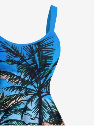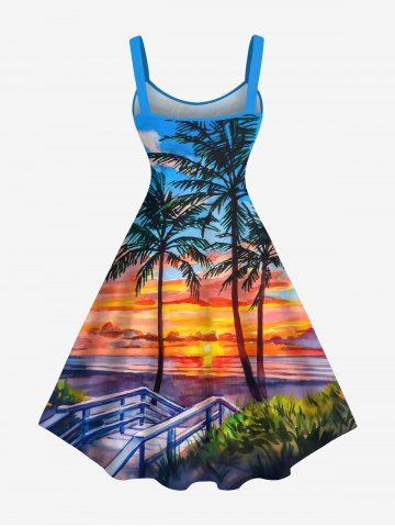 Plus Size Coconut Tree Colorful Sky Cloud Print Hawaii Tank Dress - Blue - M