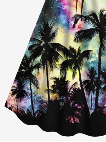 Plus Size Coconut Tree Colorful Tie Dye Galaxy Print Hawaii Cinched A Line Dress