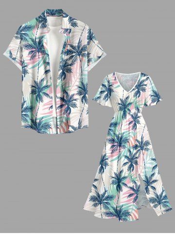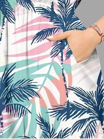 Graphic Dresses > Plus Size Coconut Tree Colorful Tropical Leaf Print Split Hawaii Midi Dress