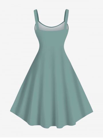 Plus Size Coconut Tree Curve Colorblock Print Hawaii Tank Dress - Multi-a - 6x