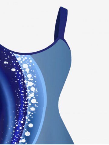 Plus Size Coconut Tree Curve Colorblock Print Hawaii Tank Dress - Blue - Xxs