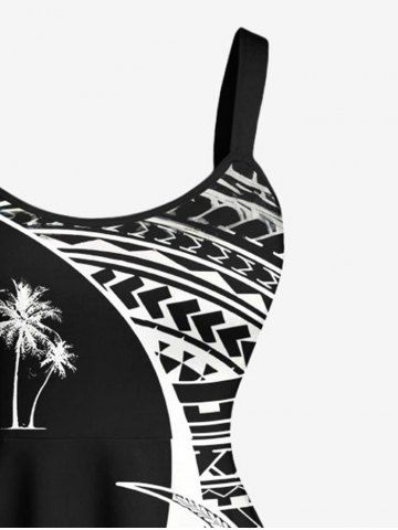 Plus Size Coconut Tree Curve Colorblock Print Hawaii Tank Dress - Black - Xs