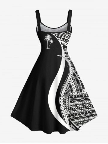Plus Size Coconut Tree Curve Colorblock Print Hawaii Tank Dress - Black - 4x