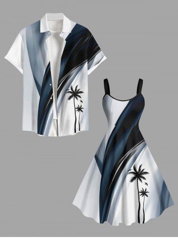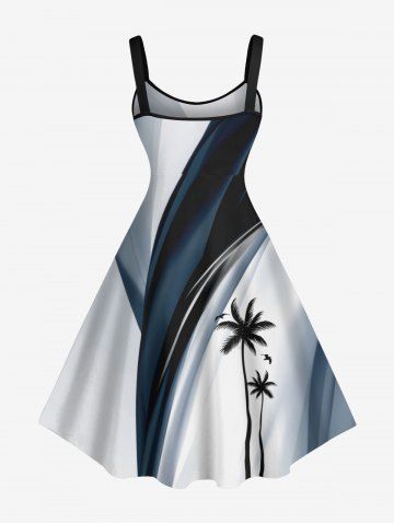 Plus Size Coconut Tree Curve Ombre Painting Print Hawaii A Line Dress - White - 3x