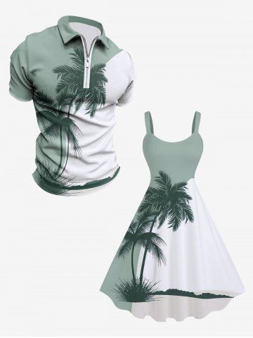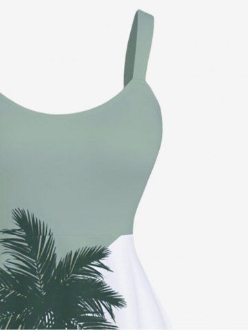 Plus Size Coconut Tree Curve Print Hawaii A Line Tank Dress - Green - S