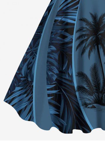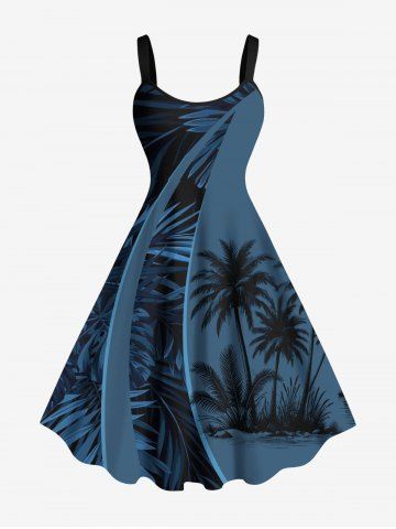 Plus Size Coconut Tree Curve Print Hawaii Ombre A Line Tank Dress - Midnight Blue - 2x