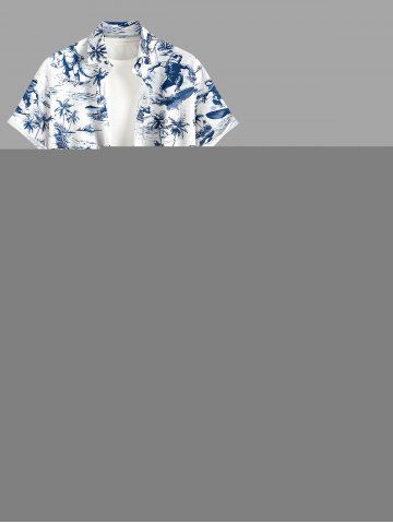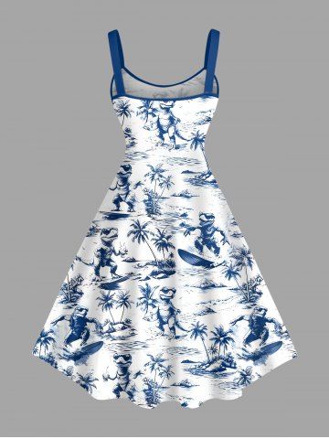 Plus Size Coconut Tree Dinosaur Sea Waves Print Hawaii Tank Dress - Blue - Xs