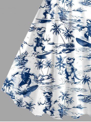 Plus Size Coconut Tree Dinosaur Sea Waves Print Hawaii Tank Dress - Blue - M